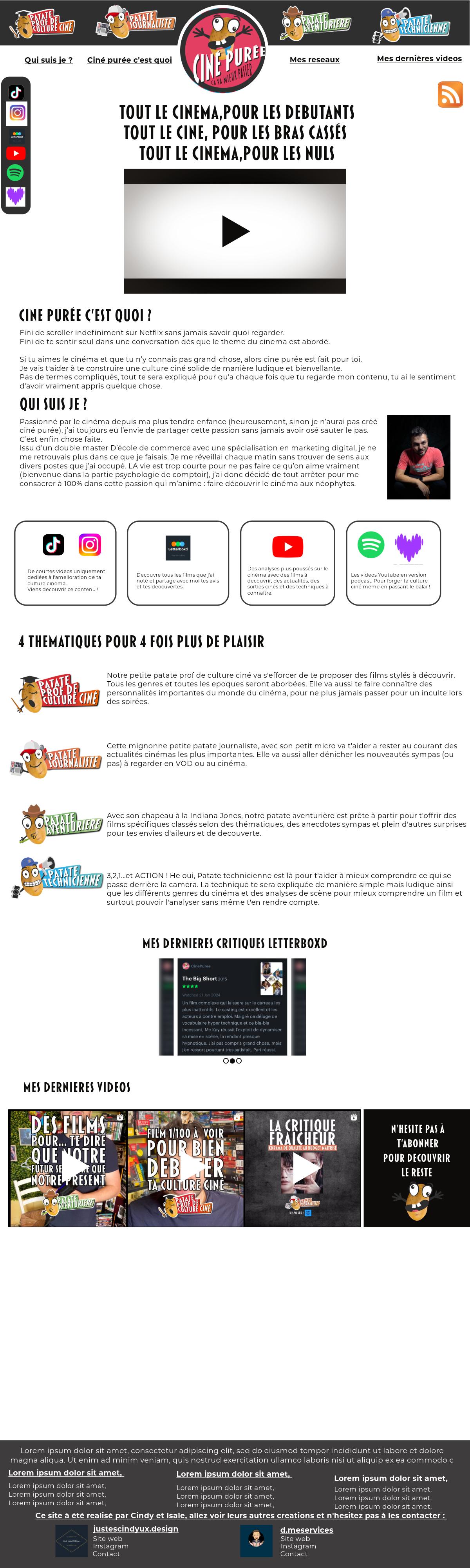 Matthieu Descheres de Ciné purée a lancé sa chaine de création de contenus axée sur le cinéma. Il est présent sur les réseaux sociaux mais a besoin d’un site internet afin de se faire connaitre plus largement du public.