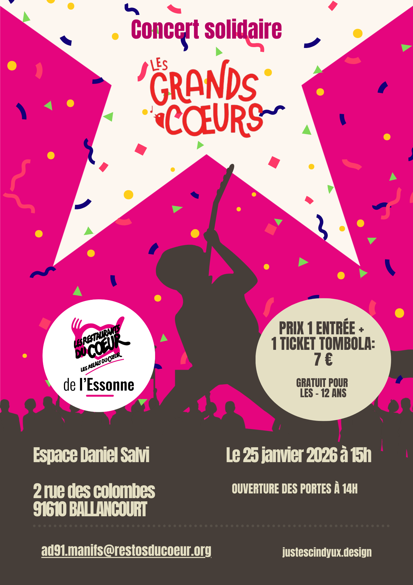Les restos du coeur de l’Essonne ont choisi une nouvelle fois de collaborer avec moi dans le cadre d’un flyer pour un concert solidaire au profit de l’association.