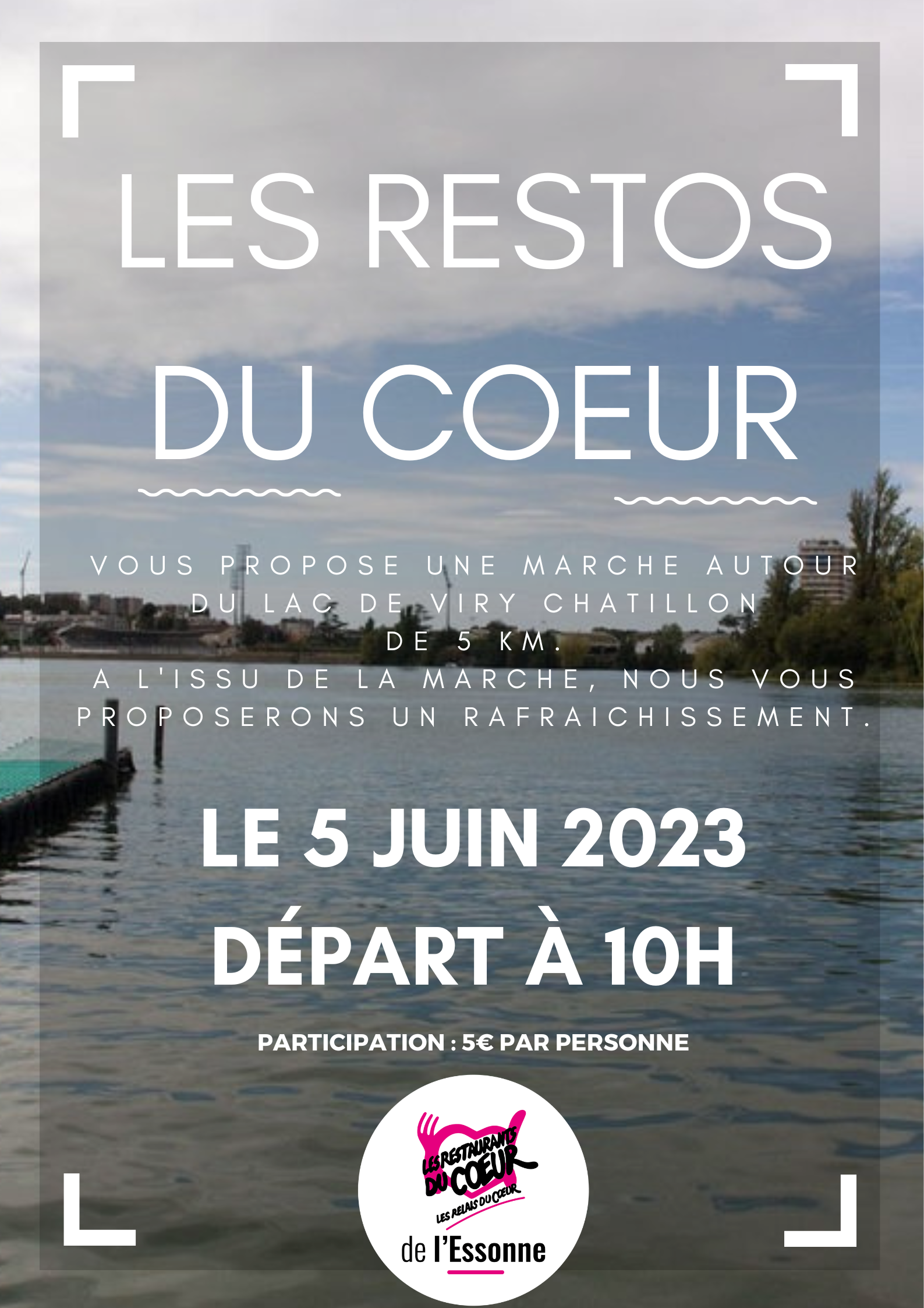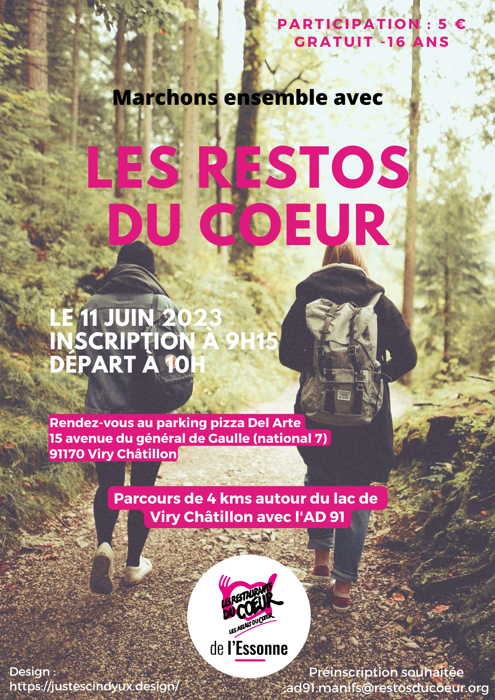 Dans le cadre d’une marche de 5km organisée le 5 juin 2023 par les restos du cœur de l’Essonne, le groupe m’a contacté afin de créer une affiche.